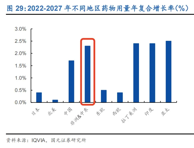 ▲非洲&中东药物用量年复合增长率显著高于成熟市场