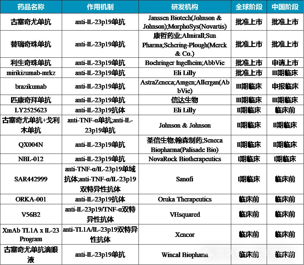 据不完全统计,目前在研的IL-23 p19药物约15种。