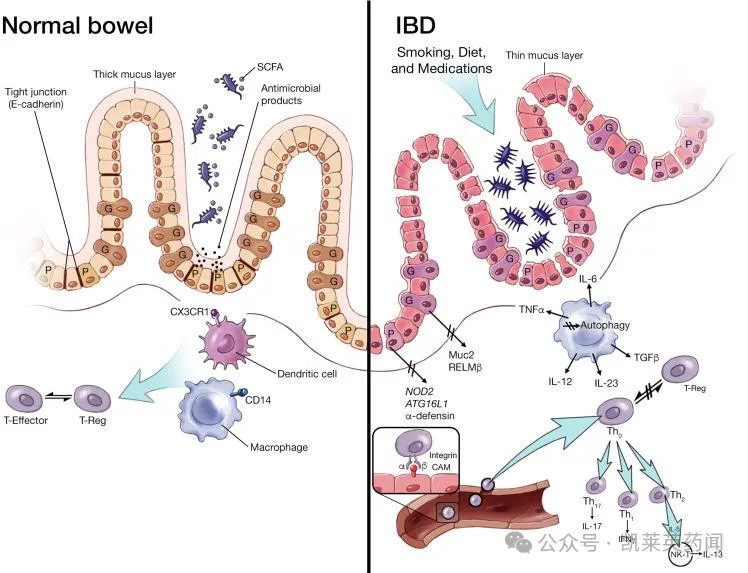 炎症性肠病(IBD)是一种非特异性的慢性复发性肠道炎症性疾病,通常表现为腹泻、直肠出血、腹痛、疲劳和体重减轻。目前IBD的病因和发病机制仍未被完全阐明,主流观点认为是自身免疫功能紊乱,触发异常的免疫反应,导致免疫系统攻击消化道内的正常细胞。