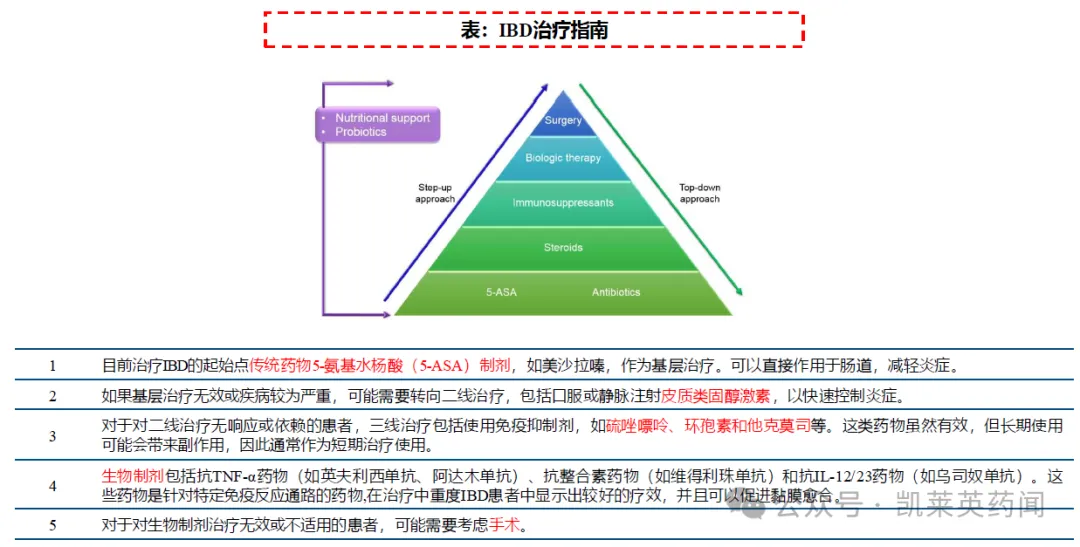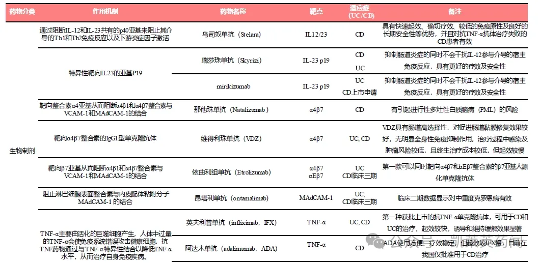 其中,相对于5-氨基水杨酸类、激素和免疫抑制剂等传统药物,生物制剂因其更为明确的疗效和良好的安全性而成为IBD的主流治疗方法。
