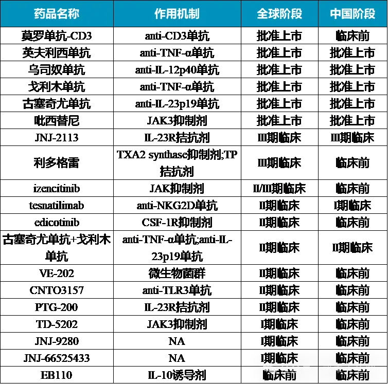 据不完全统计,目前强生在炎症性肠病领域布局的药物近20种。