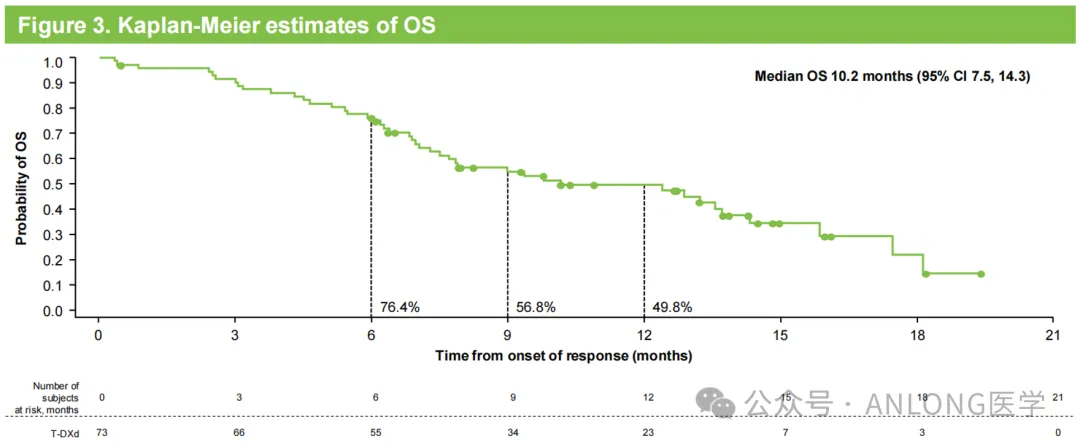结果显示,中位随访时间8.0个月时,ICR确认的德曲妥珠单抗治疗组的ORR为28.8%,INV确认的ORR为35.6%;中位DoR、OS和PFS分别为7.9个月、10.2个月和5.7个月。安全性方面,3.2%的患者因药物相关AE而停止治疗,5.3%患者因COVID-19相关AE而停止治疗;与药物相关的间质性肺病/肺炎发生率为3.2%,且均为1-2级。