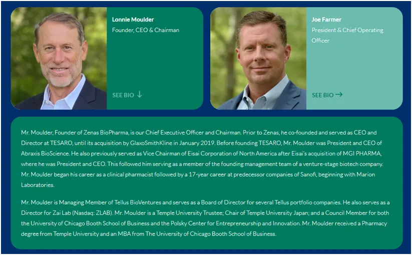 据悉,泽纳仕生物创始人兼执行董事长为Lonnie Moulder先生。在加入Zenas之前,他曾在TESARO共同创立并担任首席执行官兼董事,直到2019年1月被葛兰素史克收购。在创立TESARO之前,Moulder先生是Abraxis BioScience的总裁兼首席执行官。在卫材收购MGI PHARMA后,他还曾担任北美卫材公司的副主席,并担任该公司的总裁兼首席执行官。