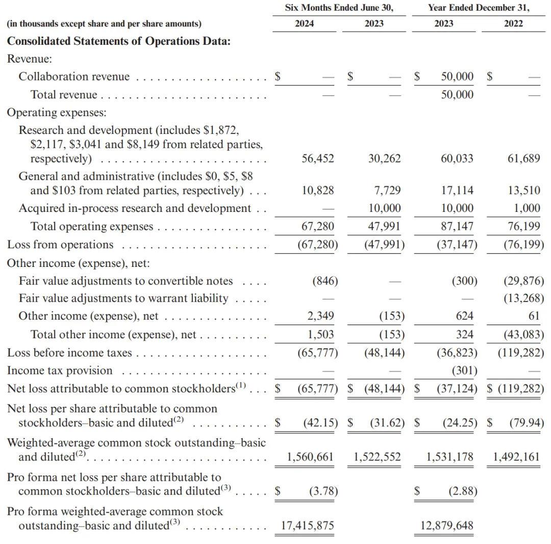 招股书显示,Zenas在2023年营收为5000万美元,2024年上半年无营收。Zenas在2024年上半年研发投入为5645万美元,上年同期的研发投入为3026万美元;管理费用1083万美元,上年同期的管理费用773万美元。