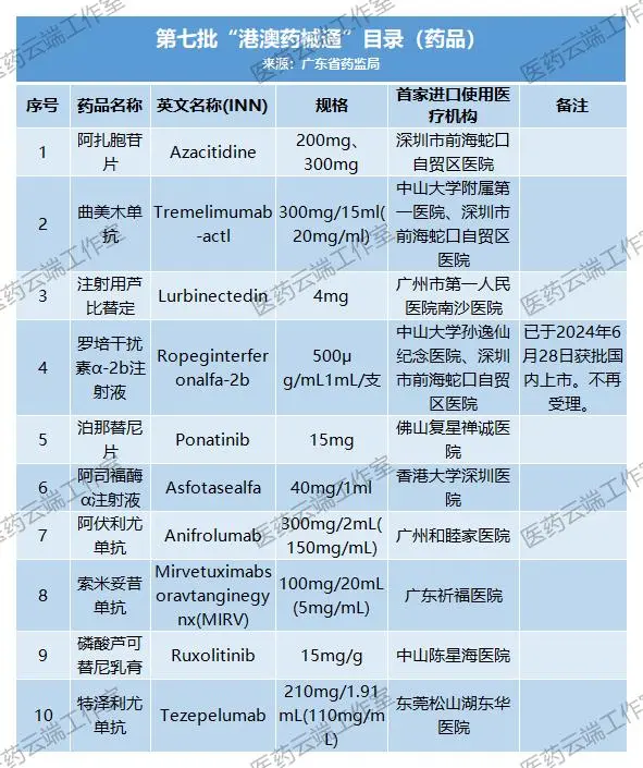 9月12日,广东省药监局官网公布了第七批粤港澳大湾区内地临床急需进口港澳药品医疗器械目录,共9个药品、10个医疗器械进入目录,另有1个药品、8个医疗器械因已在国内获批上市,不再受理。(名单附后)。