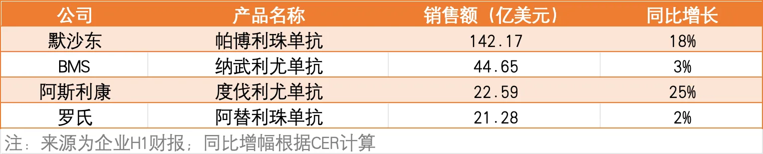 ▲2024年H1全球销售额最高四款PD-(L)1销售情况