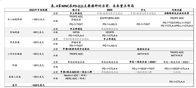 对于PD-(L)1抗体升级,四位霸主则采用了不同策略: