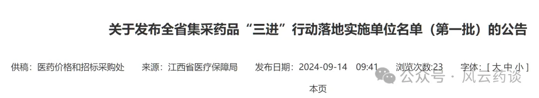 (信息来源:江西医保局 风云药谈整理)