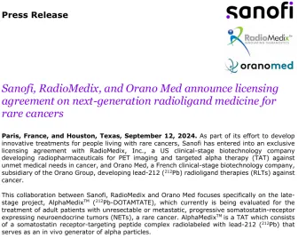 在这一背景下,赛诺菲、RadioMedix和Orano Med之间的合作引起了广泛关注。这次合作主要聚焦于后期临床项目AlphaMedix(212Pb-DOTAMTATE),这是一种创新的α核素靶向疗法药物。