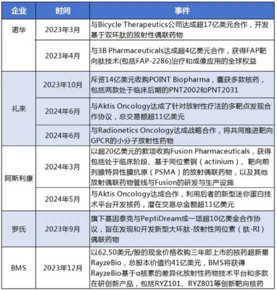 2023年-2024年跨国药企核药领域的代表性合作并购