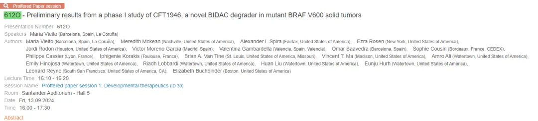 CFT1946 单药一期研究显示出令人鼓舞的结果,具有良好的耐受性,对药物的机制进行初步论证,随着剂量增加,观察到药物暴露增加,且在所有治疗后活检中观察到 BRAF V600E 蛋白降解。