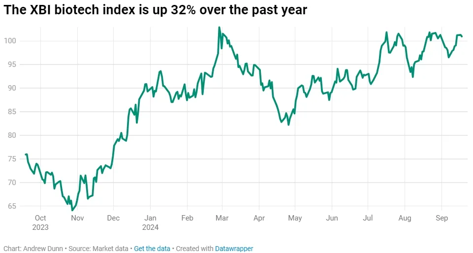 这是自2020年3月新冠疫情爆发以来美联储首次降息,生物科技市场几乎随即做出反应——备受关注的生物科技股晴雨表XBI,在周三降息后上涨了约2%。