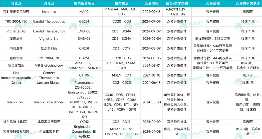 2024 年至今双抗领域发生的相关交易(截至 2024.9.20)
