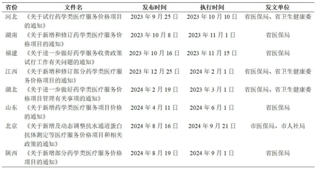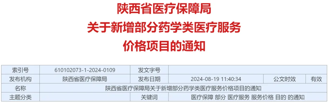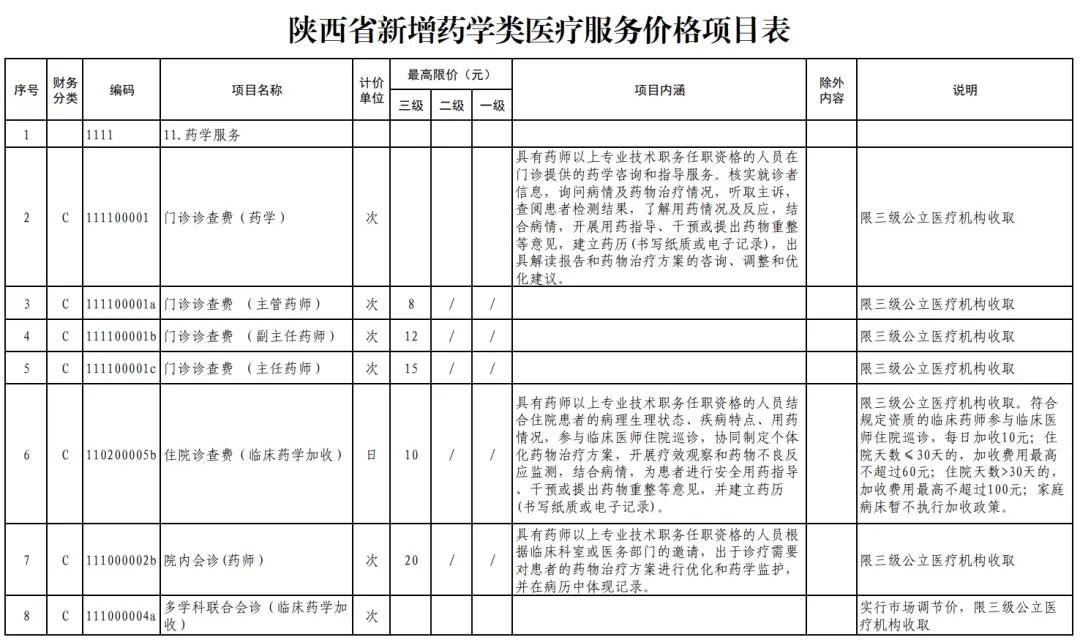 健康界发现,和北京一样,陕西省本次新增项目限省内具备临床药学服务能力的三级公立医疗机构试行。通知自9月1日起执行,试行期一年。