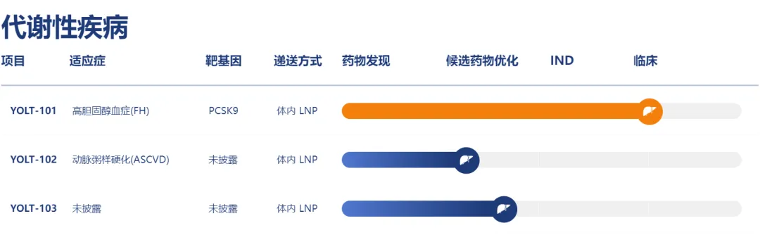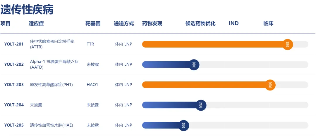 尧唐生物自主研发的首个针对ATTR的体内基因编辑药物的临床试验已于2024年3月获得国家药品监督管理局药品审评中心(CDE)批准,2024年6月成功完成首例患者入组,标志着国内首个LNP介导的体内基因编辑药物进入临床阶段。同时,基因编辑治疗家族性高胆固醇血症(FH)和原发性高草酸尿症(PH1)的项目已成功开展了研究者发起的临床研究,初步取得了优异的临床效果。