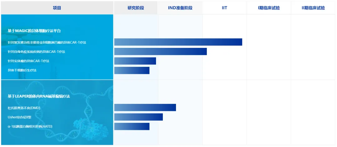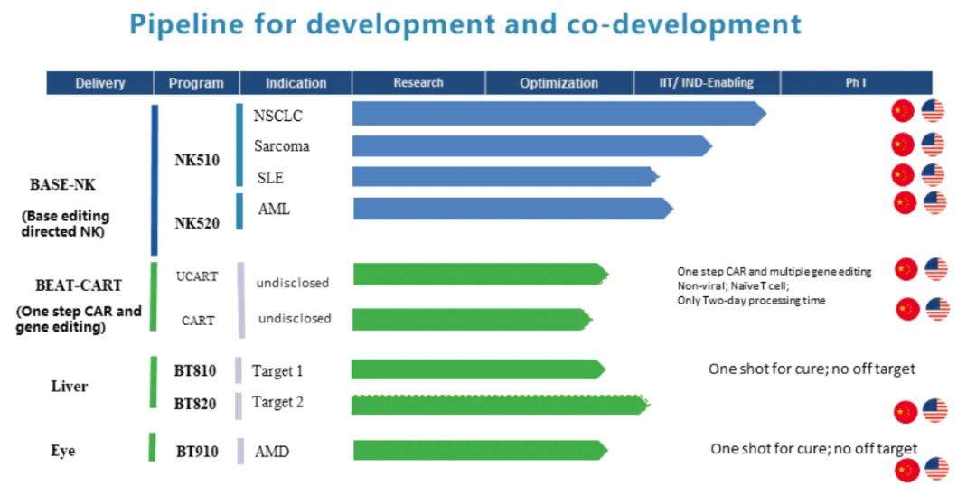 公司已建成近2500平方米的符合GMP标准的细胞生产设施,满足临床级细胞治疗研究和生产的需要。除了NK510之外,公司的产品管线还包括多个针对血液恶性肿瘤和自身免疫疾病的碱基编辑NK细胞产品,以及通用CAR免疫疗法产品和体内基因编辑。