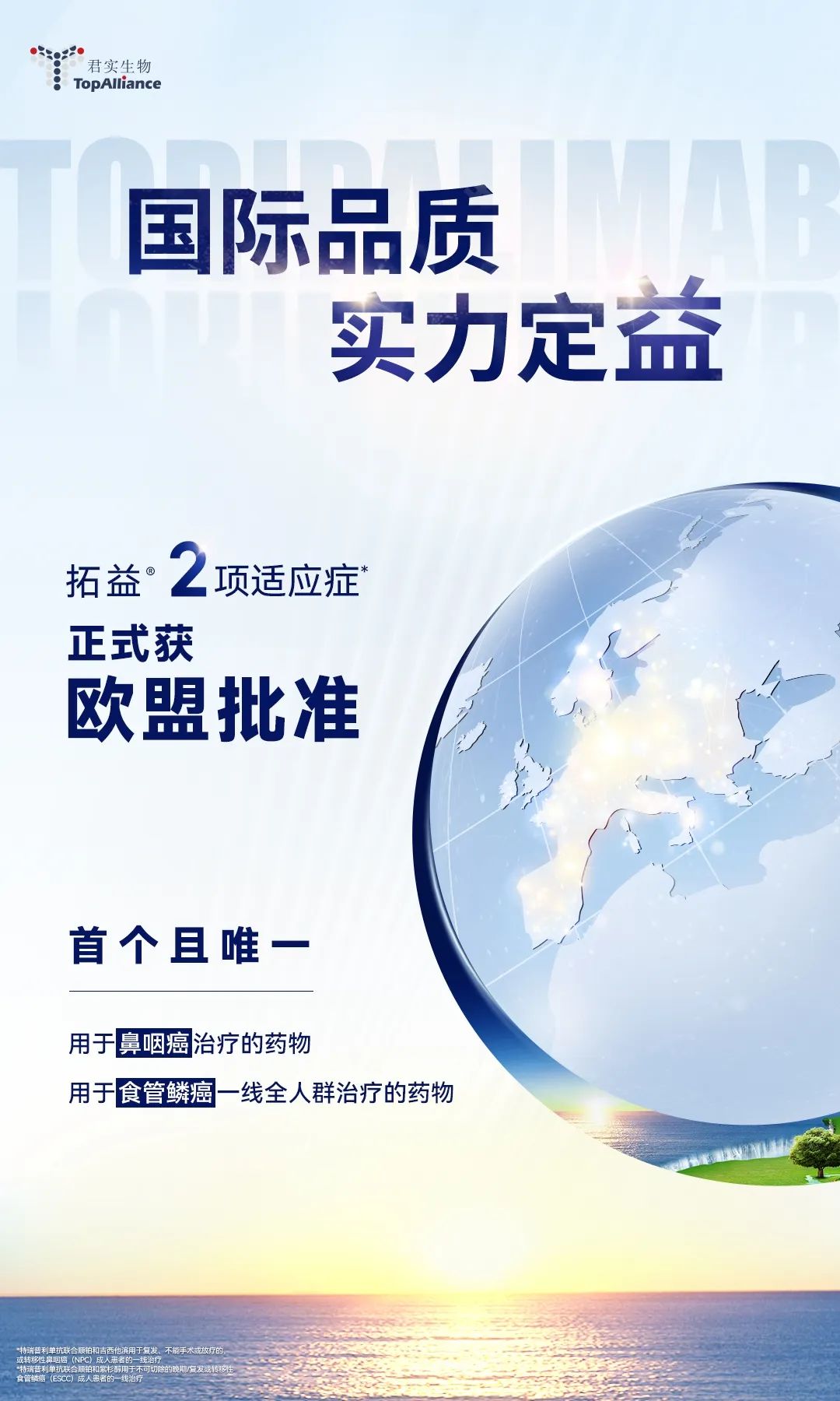 2024年7月,欧洲药品管理局(EMA)人用医药产品委员会(CHMP)发布积极审评意见,建议批准特瑞普利单抗用于以上两项适应症。此次获批适用于欧盟全部27个成员国以及冰岛、挪威和列支敦士登,使得特瑞普利单抗成为欧洲首个且唯一用于NPC治疗的药物,也是欧洲唯一用于不限PD-L1表达的晚期或转移性ESCC一线免疫治疗药物。