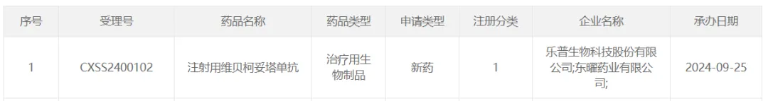 9 月 25 日,CDE 官网显示,乐普生物的 EGFR ADC 维贝柯妥塔单抗(MRG003)申报上市,用于既往经至少二线系统化疗和 PD-1/PD-L1 抑制剂治疗失败的复发/转移性鼻咽癌患者。
