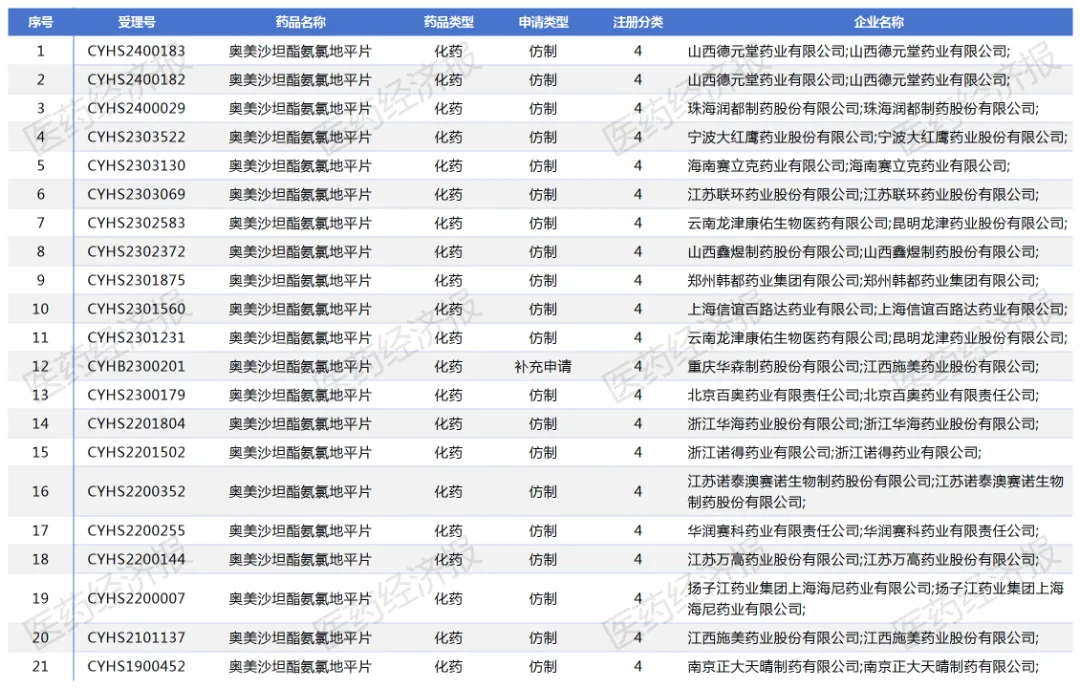 目前,已有多家企业积极布局奥美沙坦酯氨氯地平片的生产和研发,以期在未来市场中占据一席之地。扬子江上海海尼药业、华润赛科药业、安庆回音必制药等企业拥有生产批文。多家企业以仿制4类报产在审,获批后视同过评,其中,北京百奥药业、上海信谊百路达药业等企业在今年报产。江苏联环药业以仿制4类报产获CDE受理,成为该产品今年第6家报产的企业。