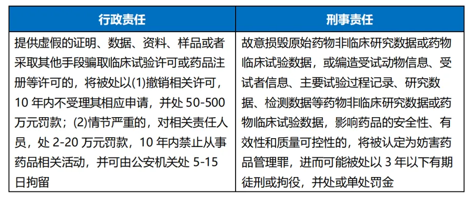 根据《药品管理法(2019修订)》与《最高人民法院、最高人民检察院关于办理危害药品安全刑事案件适用法律若干问题的解释(2022)》的有关规定,临床试验数据合规性和真实性若存在问题,需要根据行为的严重情况承担行政责任乃至刑事责任。