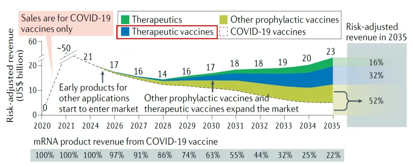 图1. 预测mRNA个性化肿瘤疫苗的市场规模到2035年将达到70-100亿美元