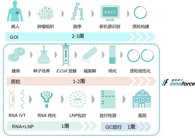 生产周期长:为了避免患者可能在等待治疗期间出现疾病复发或进展,目前对个性化肿瘤疫苗的生产周期要求从测序到药物放行仅有6-7周的时间,而传统的RNA工艺无法解决生产周期长的问题;