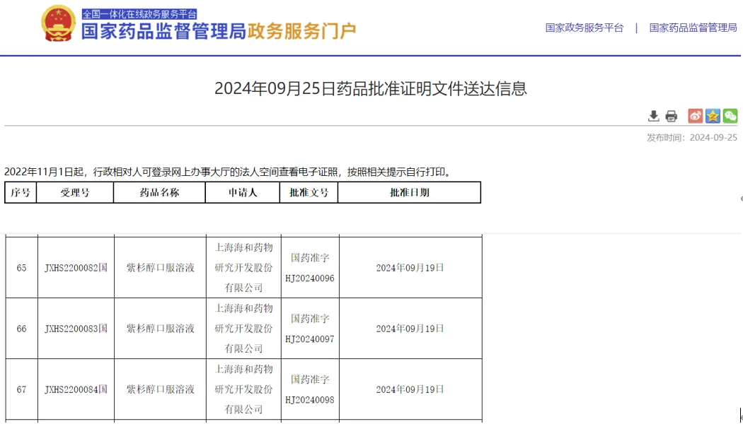 日前,上海海和药物研究开发股份有限公司(简称“海和药物”)与韩国大化制药公司(简称“大化制药”)联合发布重大喜讯:双方携手研发的紫杉醇口服溶液已荣获国家药品监督管理局(NMPA)批准,正式登陆中国大陆市场。