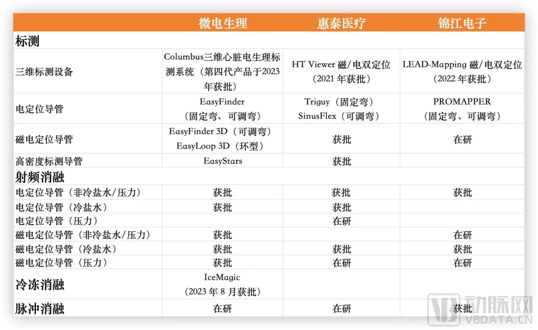 部分国产电生理厂商产品布局,数据源自企业官网、财报