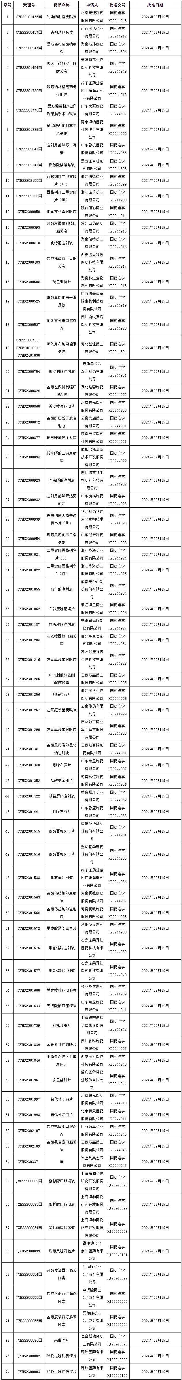 北京泰德制药的利斯的明透皮贴剂;山西同达药业的头孢地尼颗粒;海南万玮制药的复方匹可硫酸钠颗粒;天津梅花生物医药的吸入用硫酸沙丁胺醇溶液;扬子江药业的醋酸钠林格葡萄糖注射液;浙江诺得药业的2品规西格列汀二甲双胍片(Ⅱ);浙江华海药业的2品规二甲双胍恩格列净片(V);重庆圣华曦药业的2品规磷酸西格列汀片;河南润弘制药的2品规盐酸乌拉地尔注射液;上海海和药物的3品规紫杉醇口服溶液;熙德隆药业的3品规盐酸度洛西汀肠溶胶囊;晖致医药的2品规泮托拉唑钠肠溶片等。