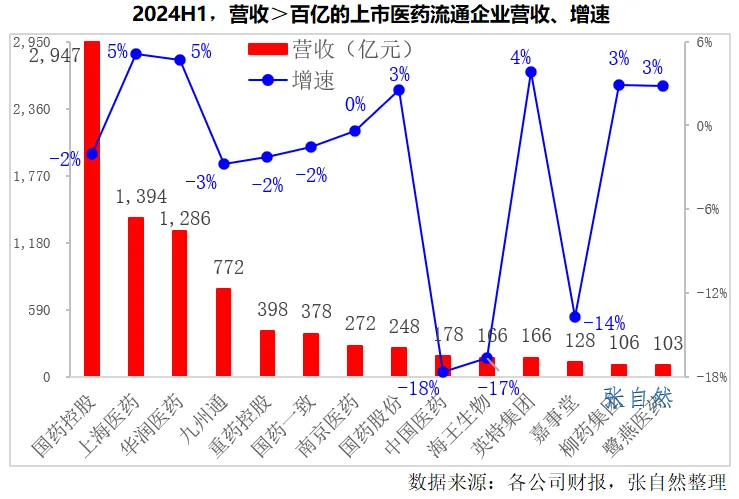 2024年上半年,在营收超百亿的14家医药流通上市企业中: