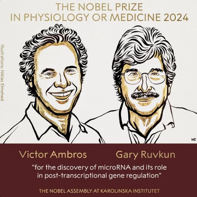 刚刚,诺贝尔基金会宣布,麻省大学医学院的Victor Ambros、麻省总医院的Gary Ruvkun获得2024年诺贝尔生理学或医学奖,获奖理由为他们在microRNAs(一组称为微小RNA,miRNA)方面的突出贡献,获奖者主要针对秀丽线虫中的microRNAs进行研究。