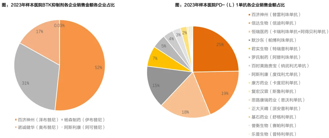 据天风证券,国内企业在部分创新药细分市场已占据主导地位。尽管杨森制药(强生)的伊布替尼是首个在中国内地获批上市的BTK抑制剂,但百济神州的泽布替尼凭借更优异的疗效和安全性,成功超越伊布替尼,占据超过50%的2023年样本医院销售额。诺诚健华奥布替尼也表现出色,获得约17%的市场份额。国内企业占据PD-(L)1单抗赛道的主要市场,销售金额占比前5名企业中仅有默沙东一家外资企业,且仅占比15%的2023年样本医院市场销售额。