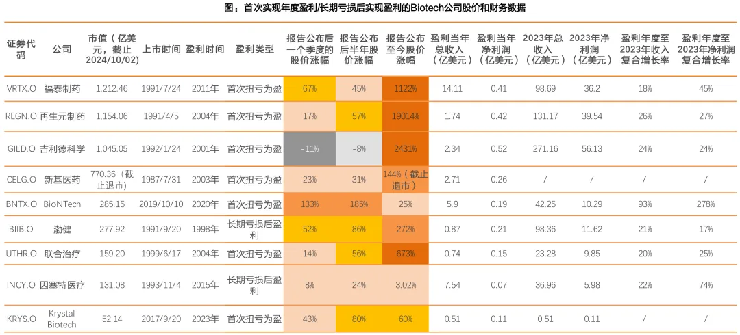 参考美股经验,实现扭亏为盈的部分Biotech公司,在盈利报告公布后的一个季度以及半年后股价表现都比较优秀,半年后股价涨幅基本都在30%以上;除了BioNtech和因塞特医疗以外,盈利报告发布至今股价涨幅都在60%以上。