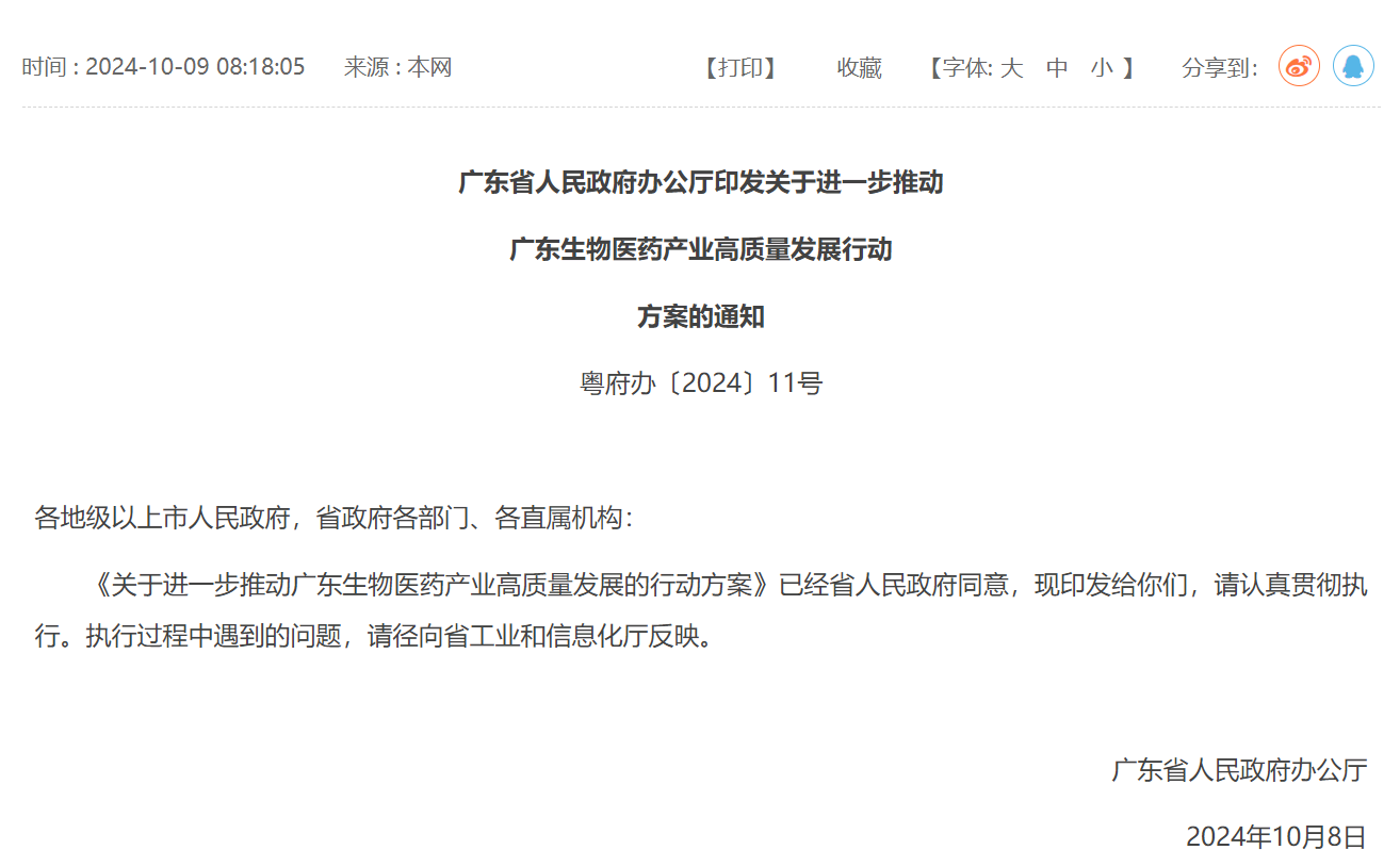 关于进一步推动广东生物医药产业