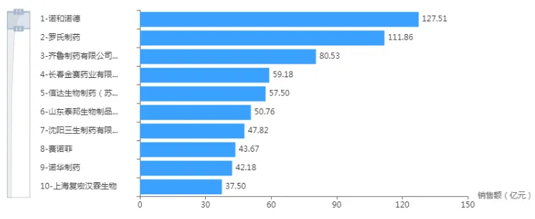 图4 2023年生物药销售额TOP10 图片来源:药智数据