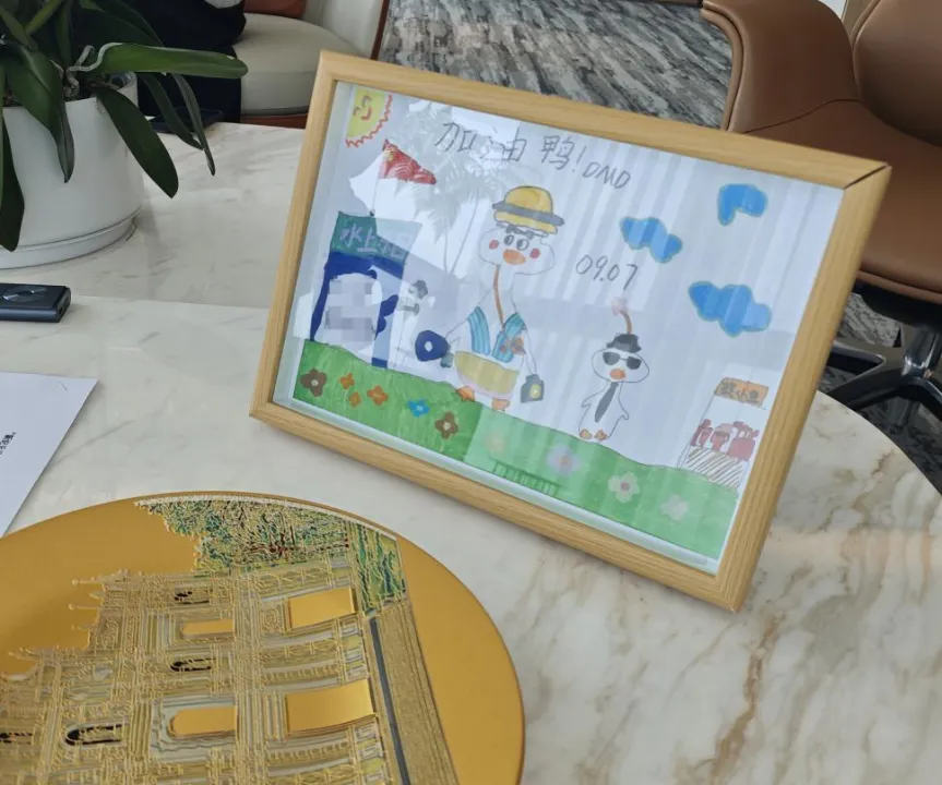 一张由患儿绘制的“加油鸭”图画,静静地立在鲁先平办公室的窗台上。