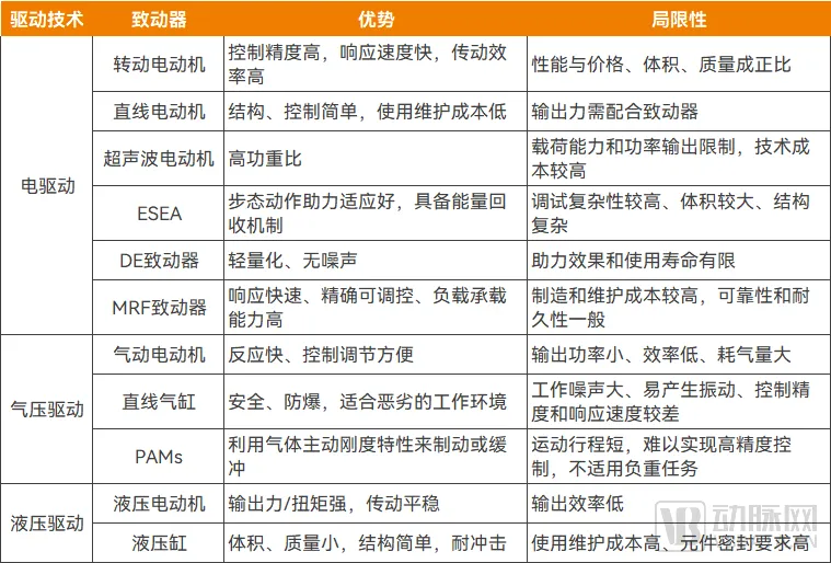 外骨骼机器人的驱动技术、致动器以及优劣势汇总,资料来源:《医疗卫生装备》