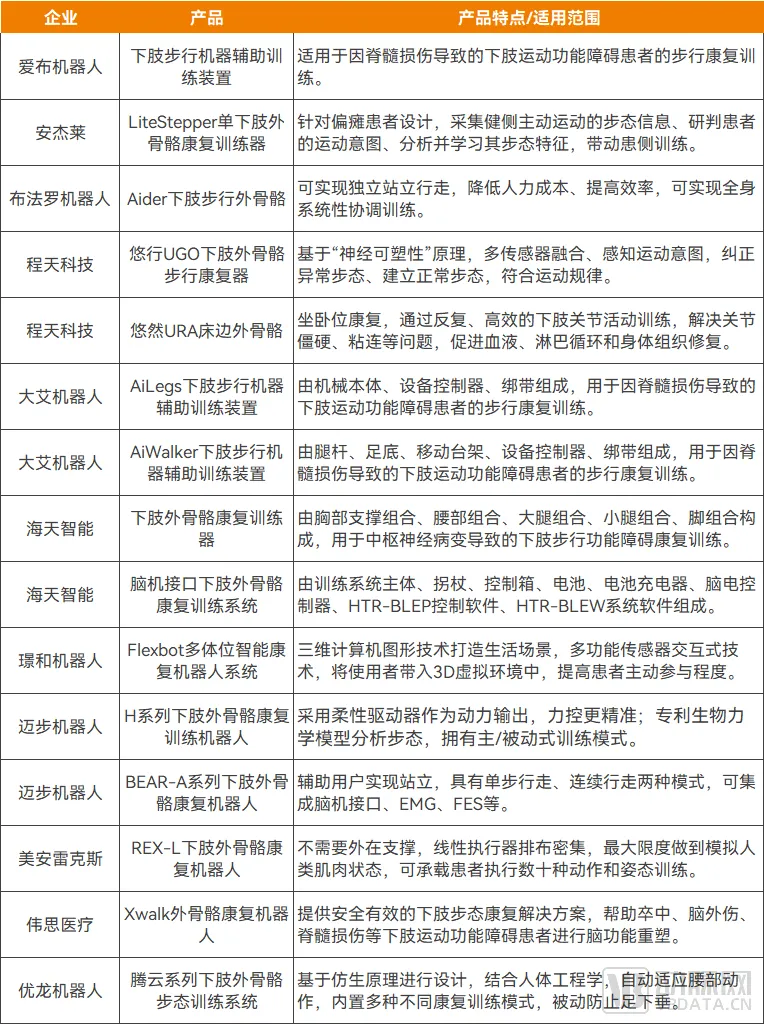 尽管国内的外骨骼机器人研发应用起步相对较晚,但随着科技研发投入加大、机器人研制技术演进以及跨国企业在国内布局,国内已涌现出一批外骨骼机器人创新研发公司,其产品应用于不同的康复训练。
