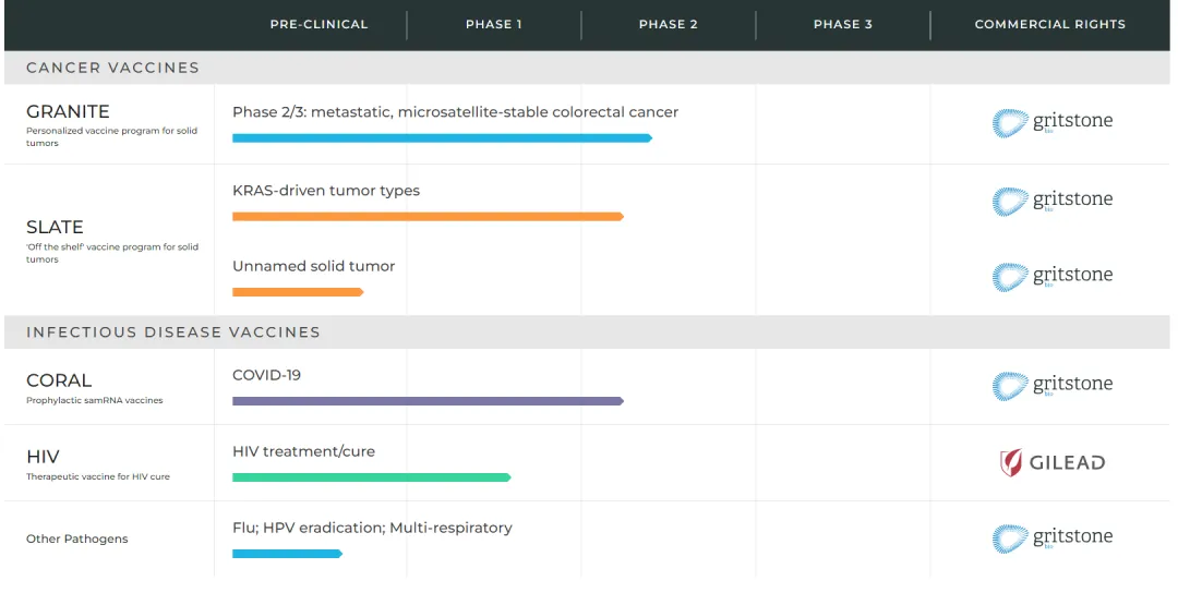 2018年9月,Gritstone作为一家成立三年的初创公司以1亿美元的IPO价格上市。当时,它被称为Gritstone Oncology,后来因将业务扩展到传染病领域去掉了后半部分,并希望在大流行病疫苗领域有所作为。该公司还与吉利德公司合作,开发基于疫苗的艾滋病治疗方法。吉利德负责指导这项合作。