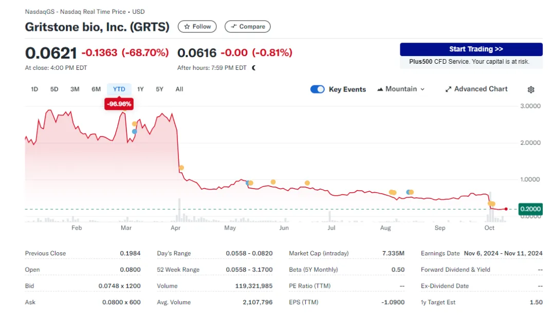 受此消息影响,Gritstone股价暴跌68%。由于Gritstone在其治疗结直肠癌的个性化新抗原疫苗的第二阶段研究中试验数据不佳,并在启动大规模的Covid-19疫苗试验中陷入困境,年初至今其股价已下跌了约96%。