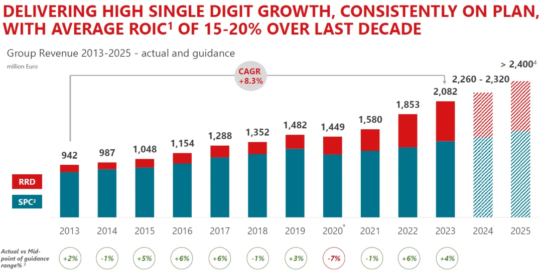 Recordati成立于1926年,2023年收入规模为20.82亿欧元,预计2025年超过24亿欧元。