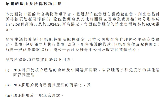本次股票配售完成后,预计康方生物现金、其他短期金融资产定期存款总额超过82亿港元(折合人民币约75亿元)。