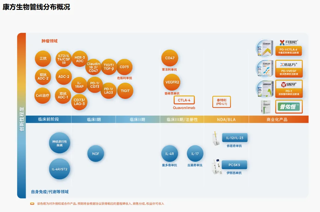 资料还显示,康方生物已开发了50个以上用于治疗肿瘤、自身免疫、炎症、代谢疾病等重大疾病的创新候选药物,22个候选药已进入临床(包括11个双抗/多抗/双抗ADC),4个新药已在商业化销售,5个新药7个适应症的上市申请处于审评审批阶段。