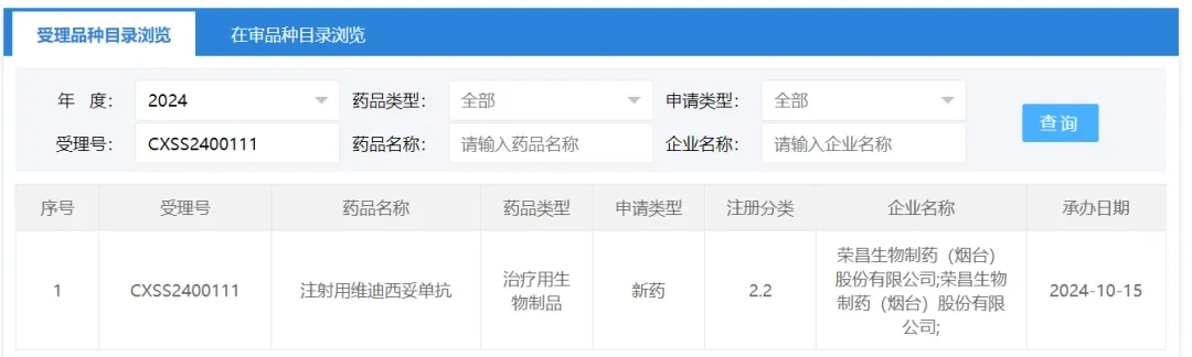 今日(10月15日),据中国国家药监局药品审评中心(CDE)官网最新公示,荣昌生物的靶向HER2的抗体偶联药物(ADC)注射用维迪西妥单抗新适应症上市申请获得受理。根据CDE官网,该上市申请已经于今年9月被纳入优先审评,适用于既往接受过曲妥珠单抗或其生物类似物和紫杉类药物治疗的HER2阳性(HER2免疫组织化学检查结果为3+或FISH+)存在肝转移的晚期乳腺癌患者。