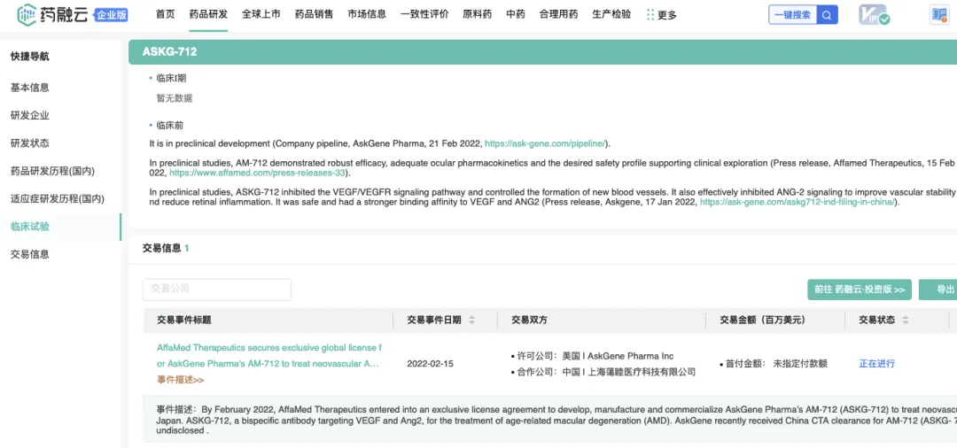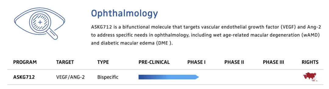 VEGF/ANG-2(此前授权给康桥资本孵化的Affamed/蔼睦医疗)(在全球亚洲以外地区和日本市场开发、生产和商业化权益);
