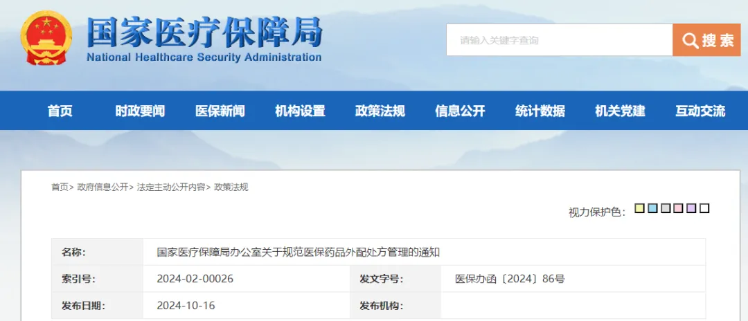 10月16日,国家医保局办公室发布《关于规范医保药品外配处方管理的通知》(医保办函〔2024〕86号),该该通知是在国家医保局对哈尔滨部分药店进行飞检,发现伪造处方套取医保资金案之后的反应,动作可谓是迅捷,旨在规范处方流转,对其中的可能发生的违法违规行为进行规则层面的补漏。