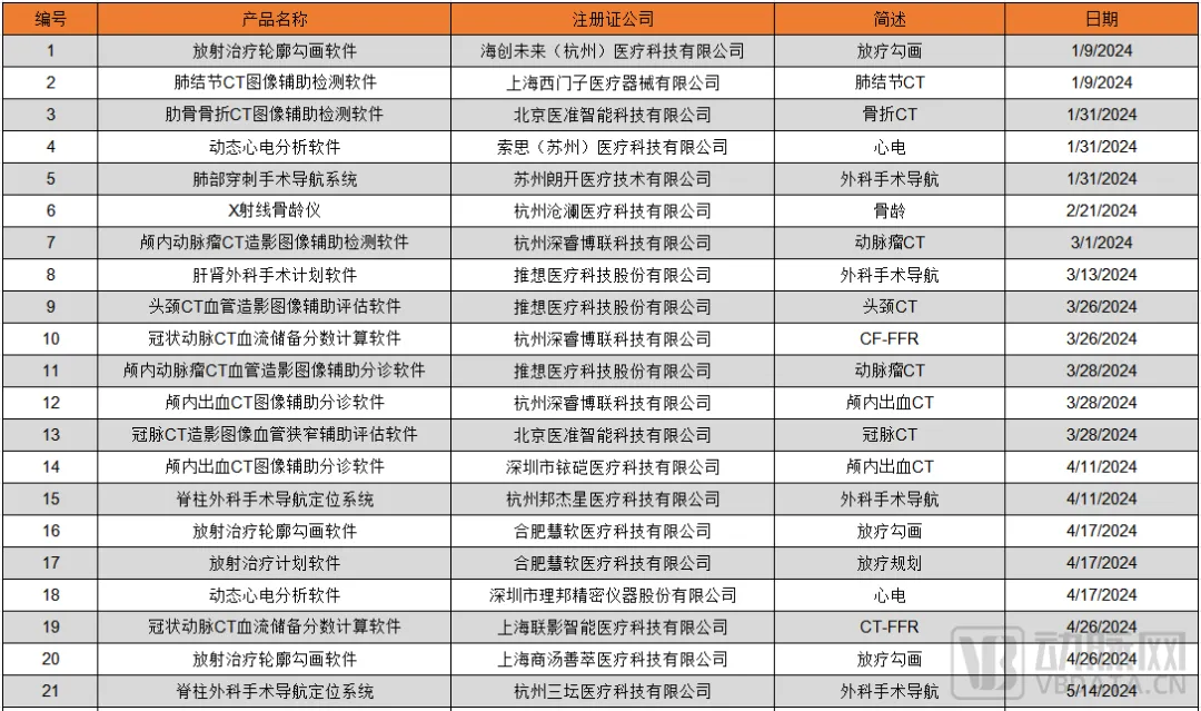 2024年1-9月通过第三类医疗器械注册准入的医疗AI产品(资料来源:国家药监局官网)