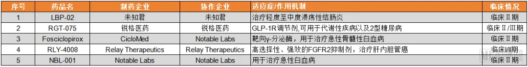 2023年10月31日—2024年9月1日更新了临床情况的管线(资料来源:蛋壳研究院、、动脉橙产业智库)