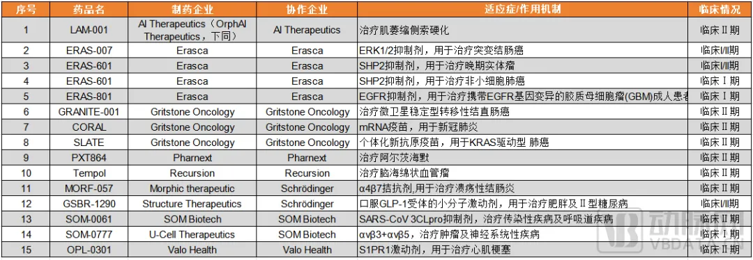 39家主流制药AI公司新增管线/适应症(资料来源:蛋壳研究院、动脉橙产业智库)