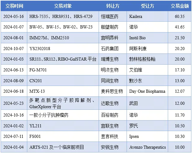 今年交易金额超过10亿美元的license out交易